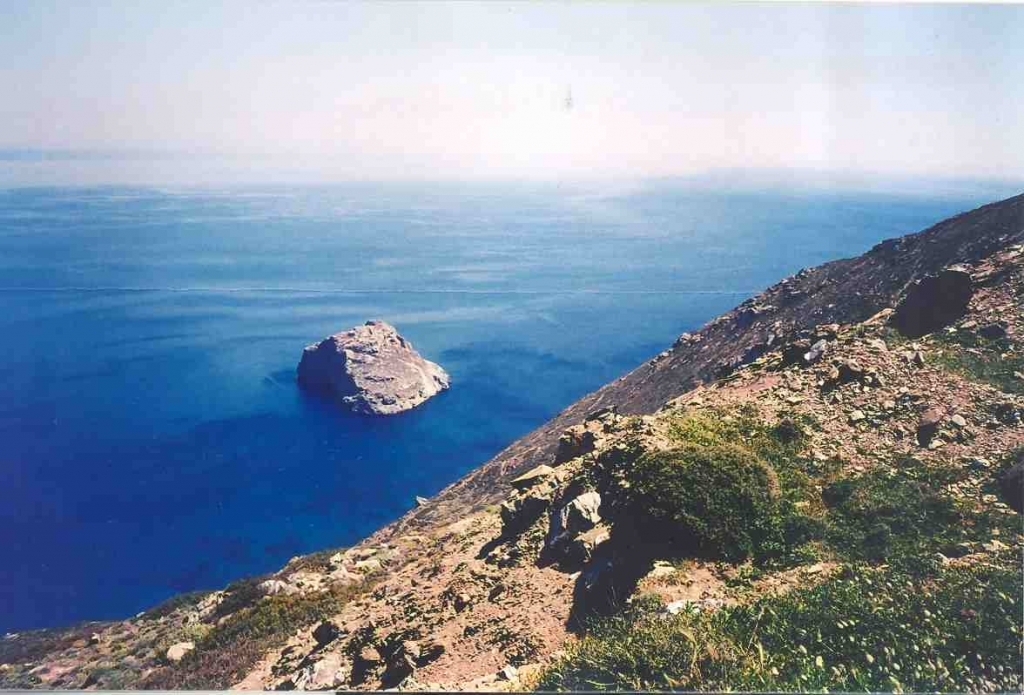 Гледката към морето от стръмните му голи склонове, пресечени от терасираща суха зидария, укрепваща ги срещу свлачища, имала някога предназначението и на синор между прежурените от слънцето оскъдни нивички, спира дъха. Навсякъде по тях пъпли популация от 35 000 кози, унищожаващи всяка новопоникнала фиданка, ако не бъдат направени специални ограждения. Морето около Аморгос е с кристалночисти води, а двете безлюдни островчета срещу него, до които през лятото всеки час пътуват каици, осигуряват алтернативно гмуркане за онези, които предпочитат уединението.