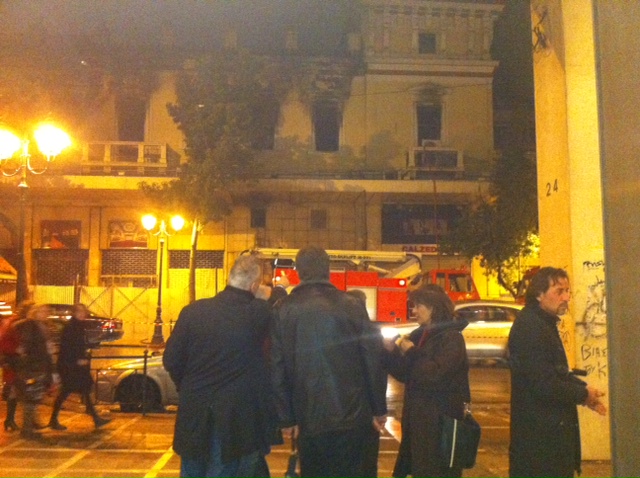Днес в центъра на Атина се проведе протест. Нищо, че участниците в него не прекъснаха движението по улица Стадиу. Около 20 членове на киногилдията в Гърция се събраха пред опушения вход на кино Атикон, което пламна в параноята на неделната нощ.