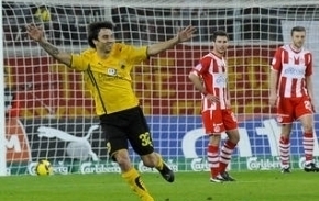 С 2:1 завърши мачът между АЕК и Олимпиакос от 16-тия кръг на Супер лигата. Макар и без президент и с все още нерешени проблеми отборът на АЕК показа една блестяща игра и доказа на своите фенове и на събралата се на стадиона публика, че всички, които са спрели да вярват в отбора са в грешка… Макар и в първите минути от първото полувреме жълто-черните да играеха неуверено и плахо, от 16-та минута до последната минута на мача те буквално бомбардираха вратата на Олимпиакос. Първият сериозен опит за гол в мача беше направен от отбора на Олимпиакос по време на 8-та минута и беше отбелязан от нападателя Мареска. Първият си опит за гол от своя страна АЕК отбеляза по време на 16-та минута когато нападателят на отбора Скоко отправи топката към противниковата врата, но тя мина покрай гредата. По време на 25-та минута беше създадено много добро положение за гол пред вратата на домакините, но нападателят Дзибур не беше достатъчно уверен и вратарят Никополидис спаси топката.