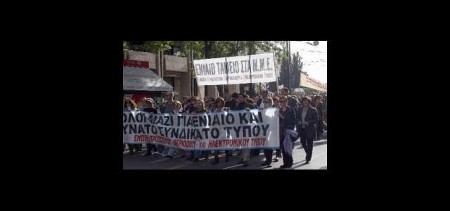 Журналистите да излезнат в 24-часова стачка от 6 часа сутринта в четвъртък до 6 часа в петък, реши съюза на журналистите в Атина. Журналистите и служителите в печатни издания и в средствата за масова комуникация ще се съберат за протестна демонстрация пред сградата на Съюза в 11 ч. сутринта, за да протестират срещу постоянните уволнения, срещу промяната в трудовите отношения и атаките срещу пенсионно-осигурителните им права. Телевизионните канали вече започнаха промени в програмите си и планират на мястото на информационните емисии да включат забавни предавания.