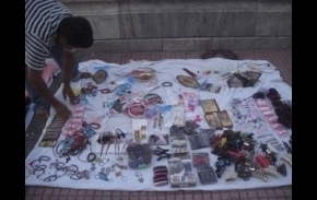 В 20.30ч. на улица Панепистимиу в центъра на Атина се отварят огромни тежки чанти. Гъвкави тъмни ръце, по които се гонят червени петна от лъчите на залязващото слънце ловко подреждат стоки върху платнени кърпи на земята. Ръцете на имигрантите от Африка и Пакистан, които всеки жител на Атина добре познава. Върху платнените улични „щандове” оставени сами в своята компания стоките изглеждат смешно. Чанти, портмонета, чорапи, пластмасови часовници, ветрила, обувки, гривни, лъскави гердани, дамски блузи, дори и православни икони свидетелстват за това, че красотата е относително понятие. Но проблемите на естетиката са почти от нулево значение за уличните продавачи. Не тя, а нуждата да оцелеят ги е накарала да покрият платната си със стоки.