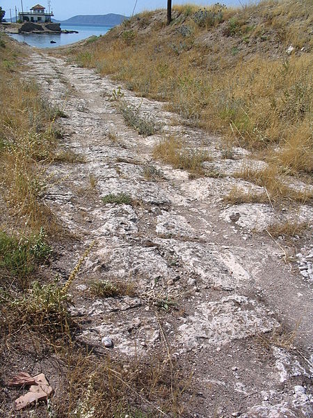 В древността между стената на провлака и неговото заграждение е съществувал Диолкът – павиран път с издълбани коловози, използван за прехвърляне на стоки и малки кораби от изток на запад между двата залива, за да се избегне заобикалянето на целия полуостров Пелопонес.