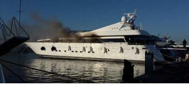 Според източници, пожарът избухнал в 06.50 ч. в машинното отделение на луксозната яхта «BUX» и за няколко минути гъсти черни облаци пушек започнали да излизат от вътрешността на плавателния съд