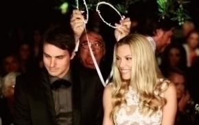 Vicky Kagia and her beloved Nikos Krithariotis from a famous fashion family made promises for eternal love at a modest ceremony in the church St. Demetrius of Lagonissi. Despite her statements that she will wear a simple white dress, Vicky appeared at the wedding as a swan princess in a tight transparent dress with lace flowers and white feathers. The designer of the dress is her relative Celia Krithariotis although there is a very similar dress in this year’s collection of Karl Lagerfeld, but embroidered with semiprecious Swarovski stones, which was carefully put away after the first dressing for the photos.