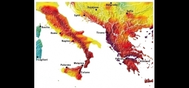 Their article was published in the French newspaper "Le Monde"; foci are identified in dark red, such as Crete, Rhodes, Samos, Mytilini, Patras, Kefalonia, Zakynthos, Epirus, and the Gulf of Corinth