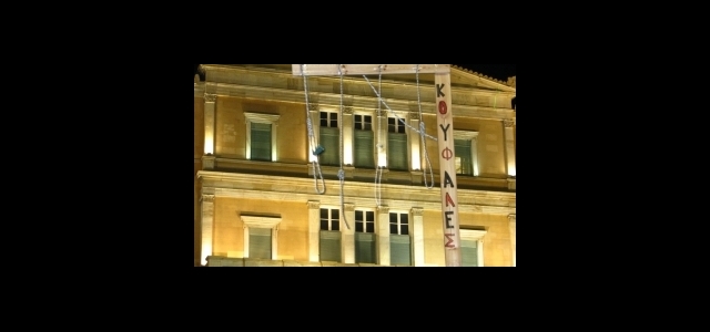 "In the rhetoric of populism, any justifiable reactions due to the economic crisis are sinking into a sea of hatred, which is getting rough. All those who once were in the dark corners of the protests are already in the foreground, making gallows, shooting grounds, people's courts for traitors and helicopters trying to rescue the deputies, who voted the memorandum of popular anger. So, this is where we have arrived at today. From swearing to yoghurt. From yoghurt to stones. From stones to knives.