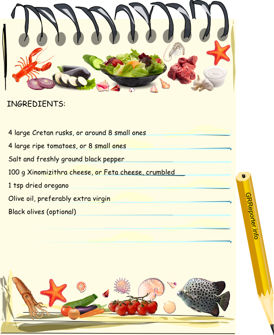 Today's recipe is exemplary of Crete's simple yet nutritious fare - an excellent appetizer or even light meal generally known as 'Dakos' or 'Ntakos'.