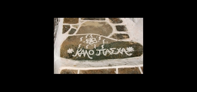 In Mykonos women whitewash houses and knead bread in the shape of people. On Good Friday people go around with the Epitaph (The Bier of Christ), and Holy Saturday Easter is celebrated in the small Paleokastro monastery.
