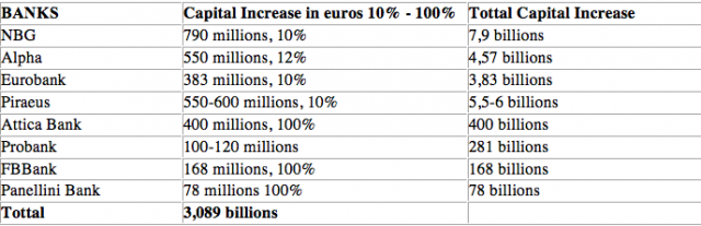 Probank is seeking 282 million euro and it is expected that it will be able to cover alone 100-120 million euro by increasing the share capital. Furthermore, the management of the bank is seeking strategic investors from abroad to support the financial institution. FBBank will probably increase its share capital in the coming weeks by issuing a bond loan to cover the 168 million euro it needs to stabilize its position. Panellini Bank will increase its share capital too, as it needs to raise 78 million euro.