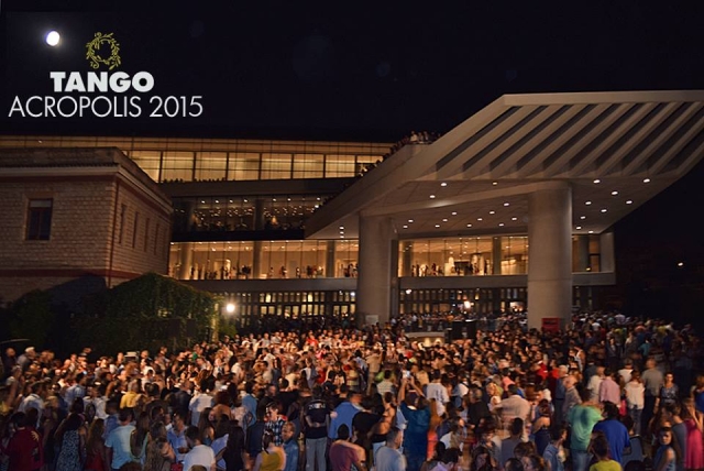 Yesterday, a crowd filled the space in front of the Acropolis Museum, which was transformed into a large stage for dancers and lovers of music and dance from Argentina. In the light of the full moon, the sounds of tango and milonga charmed the crowd which had flocked in much earlier to find a place closer to the stage and the orchestra.