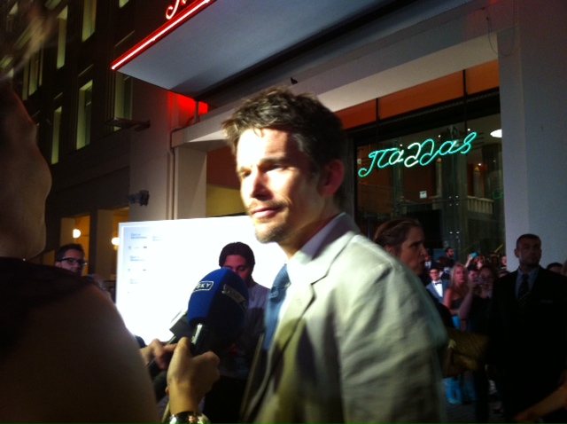 The acting pair, Ethan Hawke and Julie Delpy, arrived shortly before the show. They passed through the escort of journalists and cameras behaving quite naturally. They were smiling and did not refuse anyone who wanted to take pictures of them.