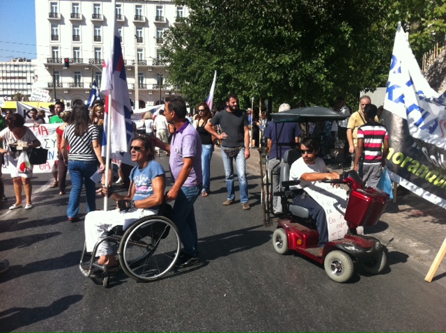 When the procession arrived, a group of representatives of different associations of disabled people entered the parliament to deliver the protest note against the new austerity measures. It is worth noting that according to sources, the allowances for the disabled will not be included in the budget cuts that are expected to be announced any time.