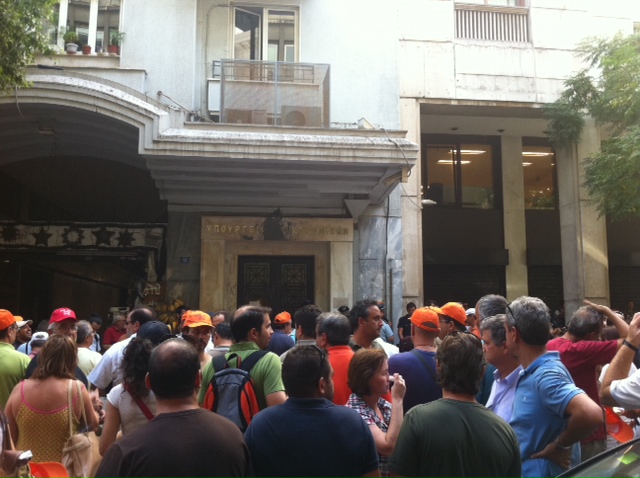 Their representatives met with Deputy Minister of Finance George Mavraganis and presented their demands to him, "To remove unfair taxes, to stop the closure of offices, no labour reserve regime, no more layoffs and wage cuts." The most active in this meeting were again the members of the Communist trade union PAME.