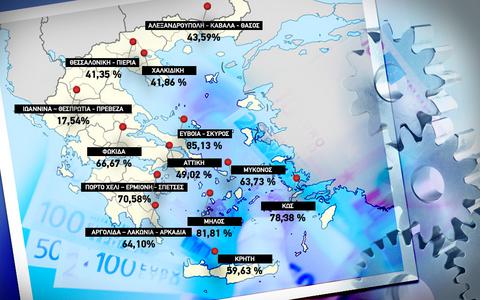 In the period 25 July to 1 August the Office for Combating Economic Crimes carried out 1,465 checks which showed that the highest percentage of tax evasion was in the region of the islands of Evia and Skyros. During these checks, a total of 731 offenders and 3,904 violations were discovered. The average percentage of violations is 49.89% and its geographical distribution is as follows: