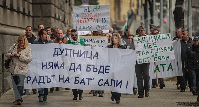 Κάτοικοι των πόλεων Ντούπνιτσα, Κιουστεντίλ, Γιάμπολ και Γκάμπροβο διαμαρτύρονται εναντίον των κοινοβουλευτικών εδρών που έλαβε το κόμμα της τουρκικής μειονότητας Κίνημα Δικαιωμάτων και Ελευθεριών DPS στις πόλεις τους, λόγω του μαθηματικού μοντέλου για την κατανομή των εδρών του συστήματος Hare-Niemeyer. Στις περισσότερες περιπτώσεις, οι διαδηλώσεις έχουν οργανωθεί με την υποστήριξη των τοπικών δομών του GERB. Στην ανακοίνωση τους από το DPS δήλωσαν ότι το GERB και το BSP διαμαρτύρονται κατά του νόμου τον οποίο οι ίδιοι ψήφισαν. Με πανό «Η Ντούπνιτσα δεν ψήφισε τον Μπατ Σάλι» και «Όχι στους Τούρκους βουλευτές» δεκάδες κάτοικοι της πόλης τάχθηκαν εναντίον της απόφασης της Κεντρικής Εκλογικής Επιτροπής να δώσει βουλευτική έδρα στον Αλεξάνδαρ Μετόντιεφ-Μπατ Σάλι στην εκλογική περιοχή του και κάλεσαν την Κεντρική Εκλογική Επιτροπή να αλλάξει την απόφασή της.