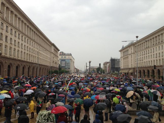 Λόγω της βροχής που συνέχιζε πάνω από 24 ώρες στη Σόφια και την υπόλοιπη χώρα, χθες το βράδυ στην πλατεία «Νεζαβίσιμοστ» έξω από το Υπουργικό Συμβούλιο συγκεντρώθηκαν λιγότεροι διαδηλωτές – περίπου 1.000, ενώ σύμφωνα με ορισμένες πηγές, ο αριθμός τους ήταν 3.000 άτομα.
